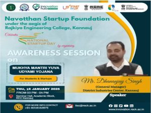 916th January 2025An Awareness Session on ‘Mukhya Mantri Yuva Udyami Yojana’ On the occasion of National Startup DaySeminar Hall, Academic Block, REC Kannauj
