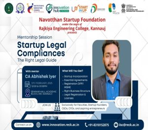 1105th February 2025A Mentorship session on “Startup Legal Compliances: The Right Legal Guide”Conference Hall, Incubation Center, REC Kannauj