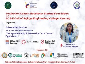 8 | 30th August 2025 | Orientation session on “Entrepreneurship and Innovation as a Career Opportunity” for B.Tech First Year students. | Conference Hall, Academic Block, REC Kannauj |  |